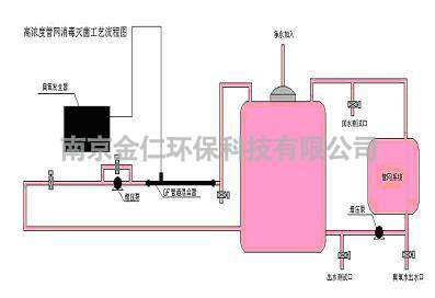 主管道或密閉容器上開連接口,配置閥門及活結,通過管路將高濃度臭氧氣體或臭氧混合水輸入需滅菌容器或管道內,達到消毒滅菌效果。